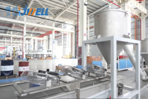 - Sistem de răcire – După extrudare, amestecatura este răcită rapid pentru a o solidifica într-o formă care poate fi procesată ulterior. Sistemele de răcire constau de obicei în băi de apă sau metode de răcire prin aer pentru a evita degradarea produsului datorită căldurii excesive.